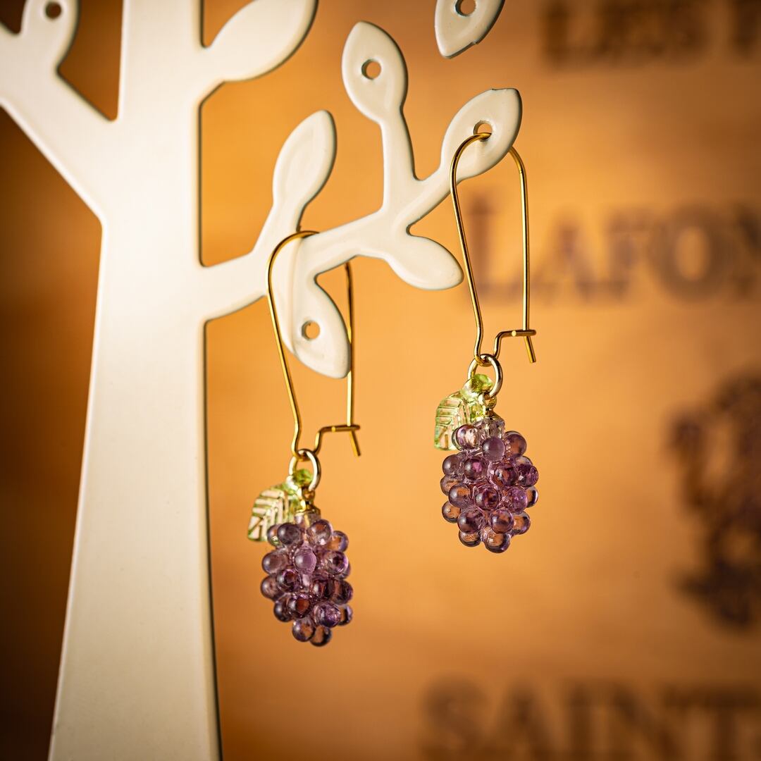 ぶどうのピアスです。紛失しにくいキドニーフック。