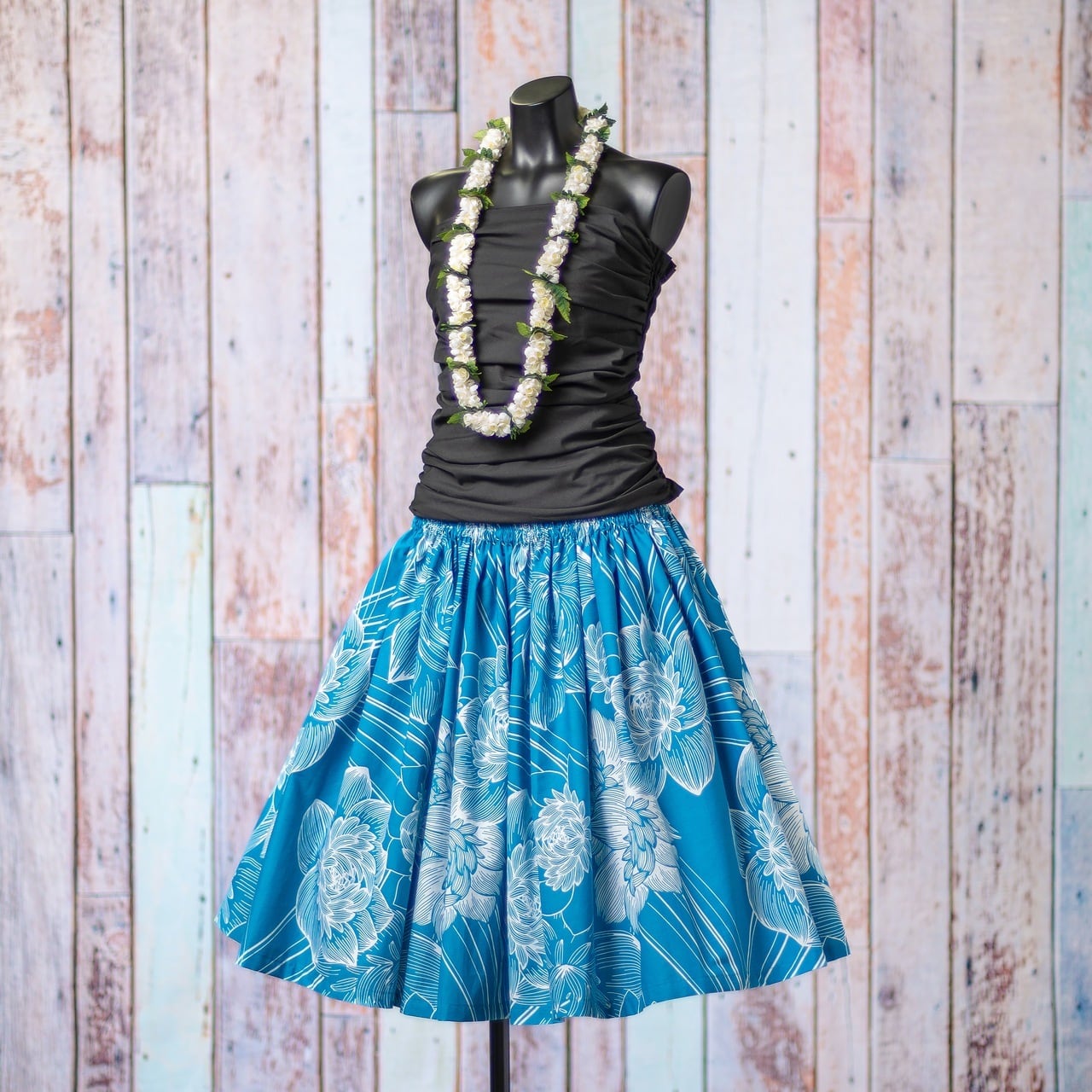 パウスカート 蓮の花 ロータス柄 ブルー フラダンス