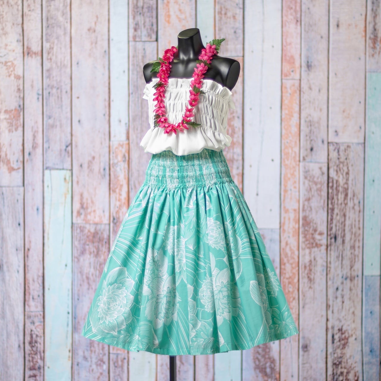 パウスカート 蓮の花 ロータス柄 ミント フラダンス