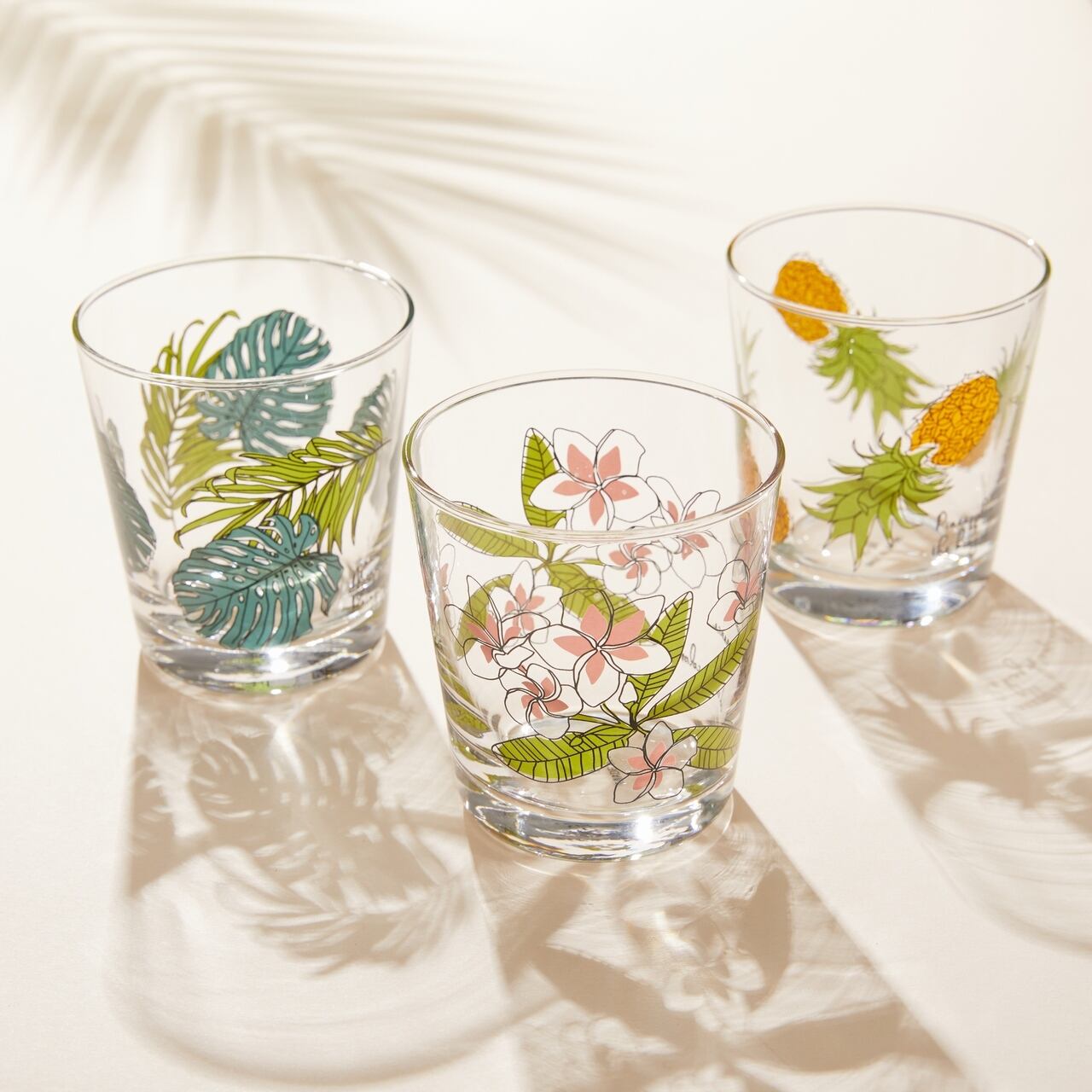 ハワイアン ガラスコップ 3柄セット プルメリア モンステラ パイナップル