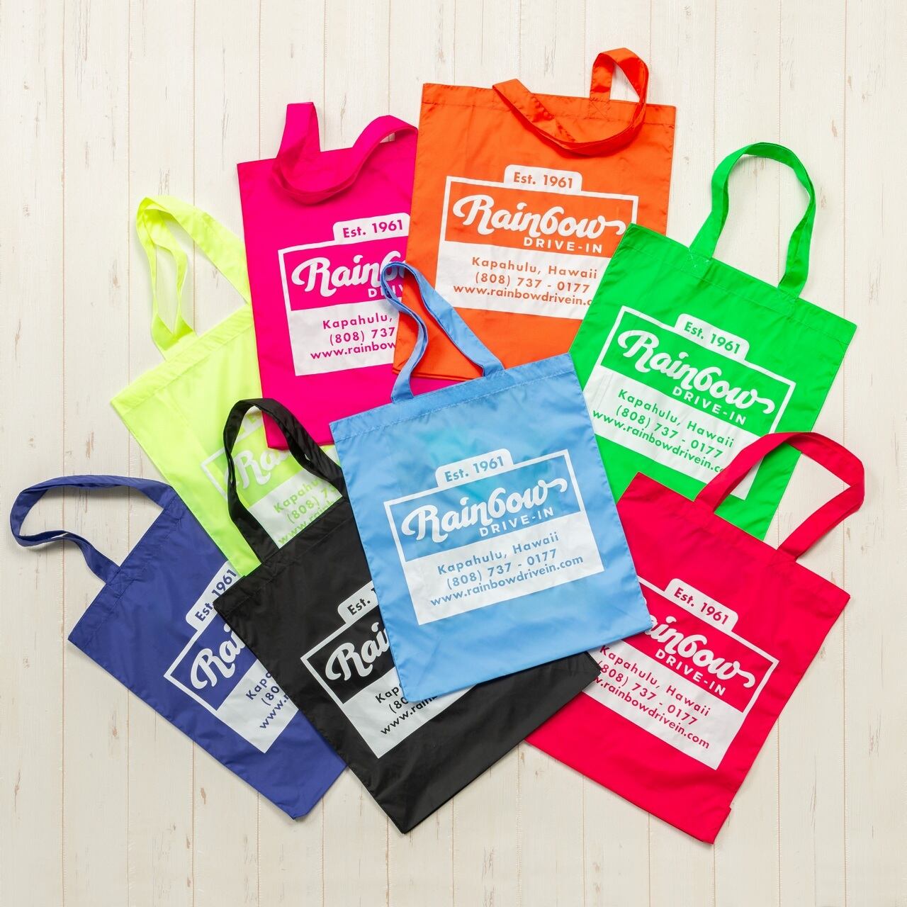 ハワイの Rainbow Drive-In のロゴがおしゃれな大容量トートバッグ。